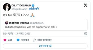 ਦਿਲਜੀਤ ਨੇ ਖੁਦ ਇੱਕ ਵੀਡੀਓ ਵਿੱਚ ਕਿਹਾ ਸੀ ਕਿ ਉਸ ਨੇ “ਕੌਣ ਬਨੇਗਾ ਕਰੋੜਪਤੀ 17” ਦੀ ਸ਼ੂਟਿੰਗ ਪੂਰੀ ਕਰ ਲਈ ਹੈ। ਇਸ ਐਪੀਸੋਡ ਵਿੱਚ ਉਹ ਆਪਣੇ ਹਾਸੇ-ਮਜ਼ਾਕ ਵਾਲੇ ਅੰਦਾਜ਼ ਦਿਲ ਨੂੰ ਛੂਹ ਲੈਣ ਵਾਲੇ ਜਵਾਬਾਂ ਅਤੇ ਪੰਜਾਬੀ ਛੋਹ ਨਾਲ ਦਰਸ਼ਕਾਂ ਦਾ ਦਿਲ ਜਿੱਤਣ ਲਈ ਤਿਆਰ ਹੈ।ਹਾਲ ਹੀ ਵਿੱਚ ਜਦੋਂ ਇੱਕ ਪ੍ਰਸ਼ੰਸਕ ਨੇ ਉਸ ਨੂੰ ਸੋਸ਼ਲ ਮੀਡੀਆ ਪਲੇਟਫਾਰਮ ਐਕਸ ‘ਤੇ ਪੁੱਛਿਆ ਕਿ “ਕੇਬੀਸੀ ‘ਤੇ ਤੁਹਾਡਾ ਤਜਰਬਾ ਕਿਵੇਂ ਰਿਹਾ?”, ਤਾਂ ਦਿਲਜੀਤ ਨੇ ਨਿਮਰਤਾ ਨਾਲ ਜਵਾਬ ਦਿੱਤਾ, “ਇਹ ਪੰਜਾਬ ਦੇ ਹੜ੍ਹਾਂ ਲਈ ਹੈ।”